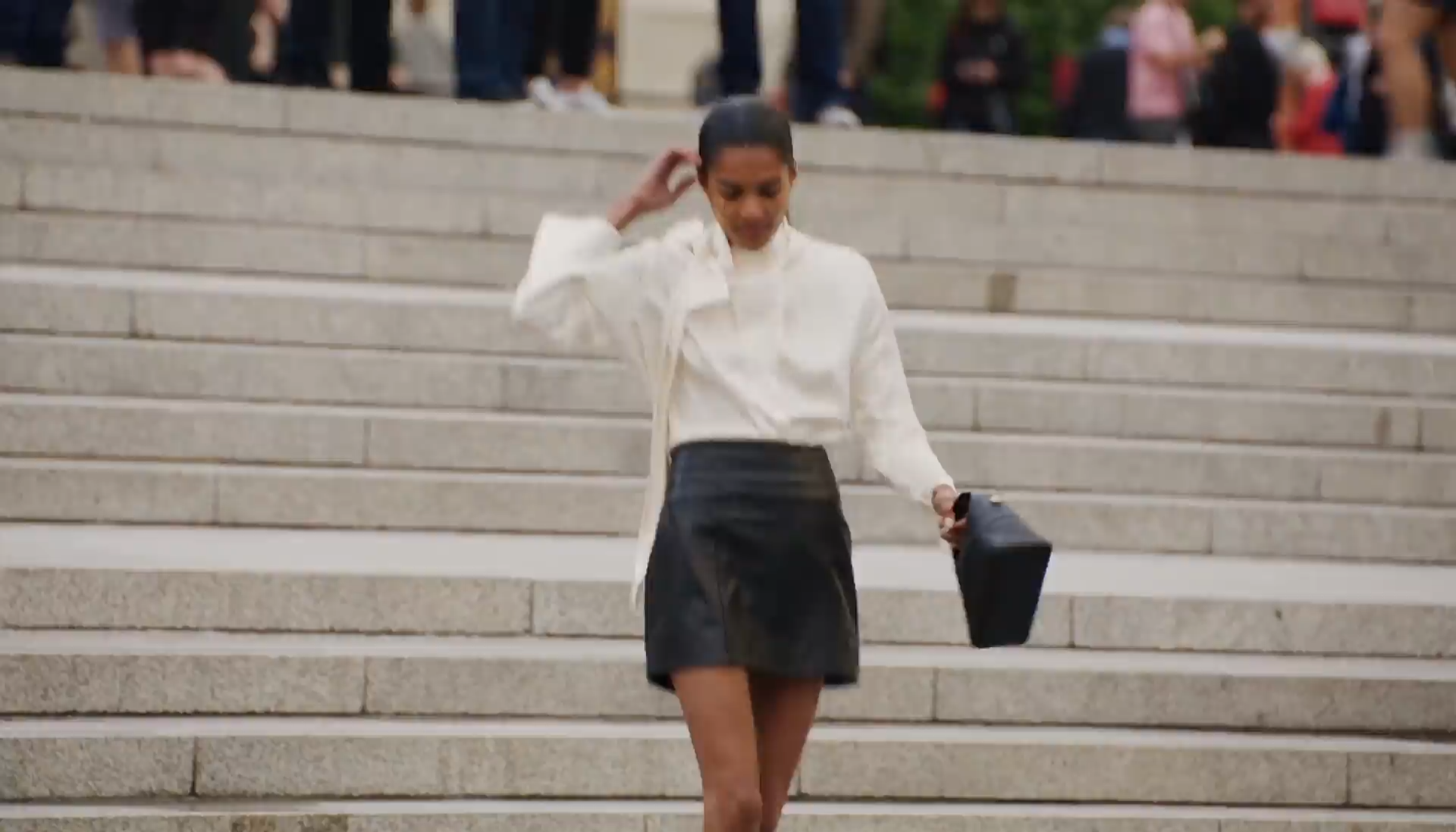 Casual Solid Shirt With Faux Leather Mini Skirt Set