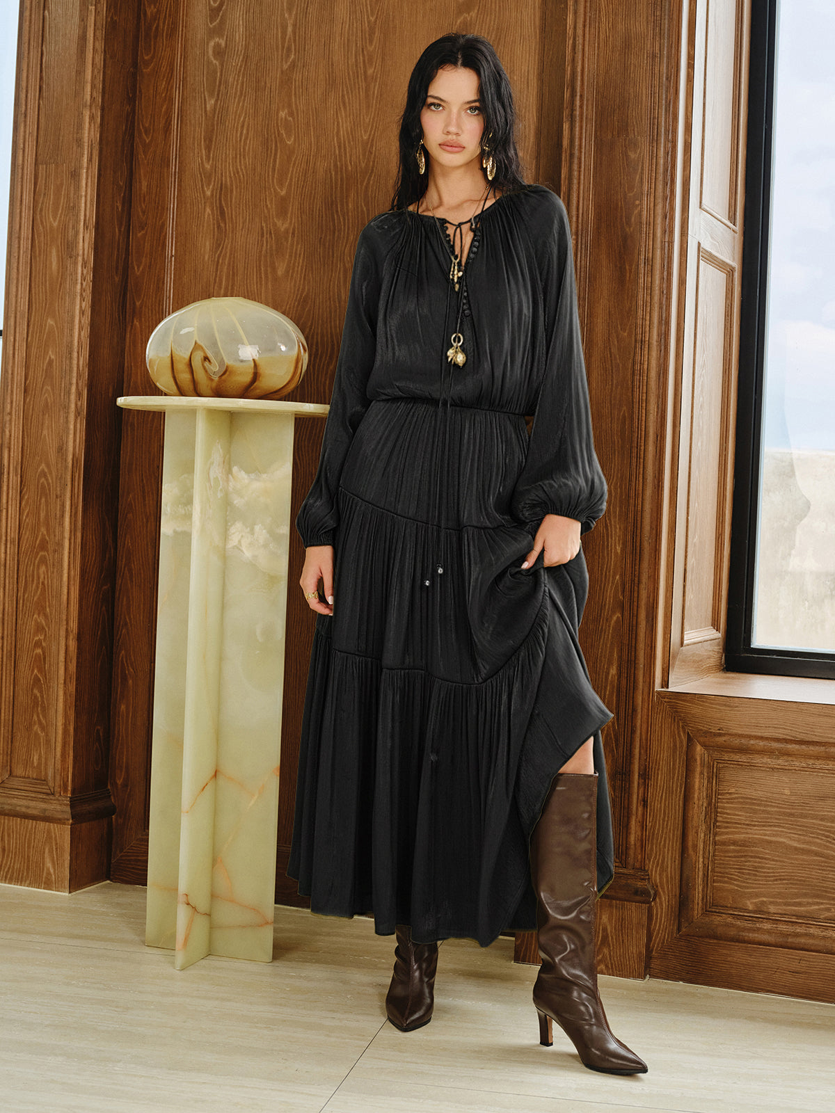 Zigzag Embellished Knit One-Shoulder Maxi Dress
