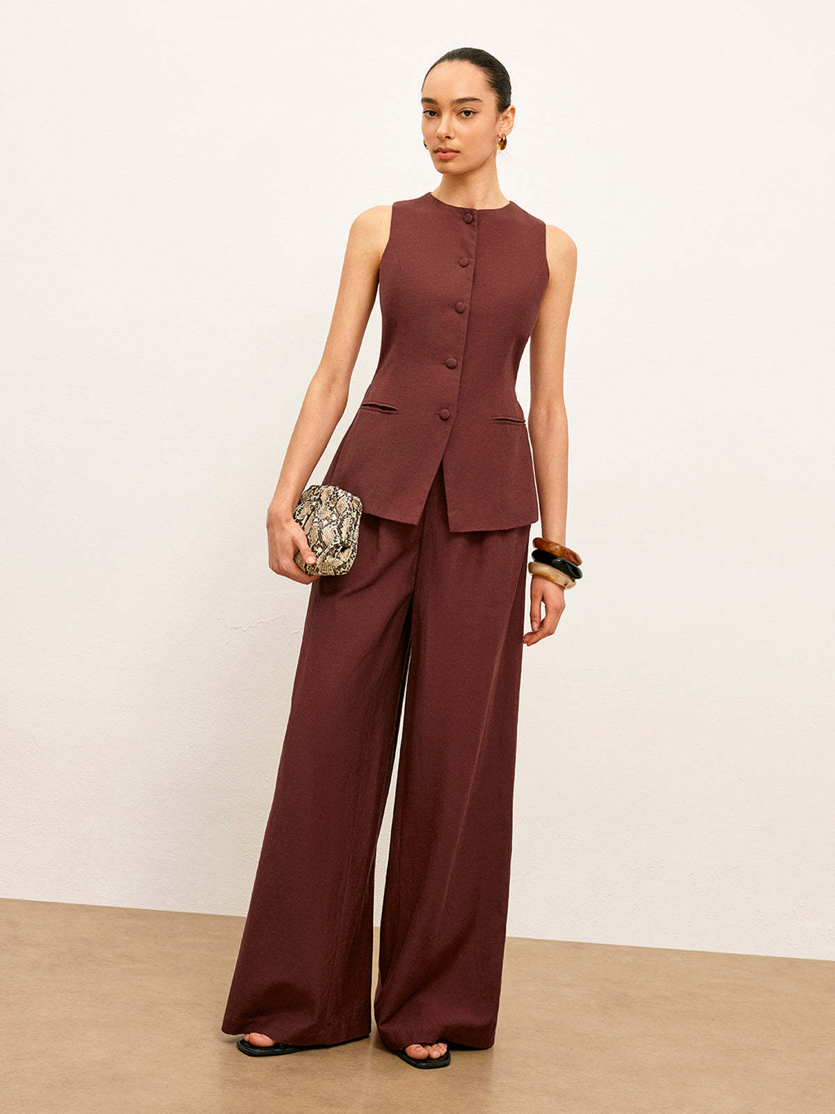 Mid-Waist Wide-Leg Pants With Pockets