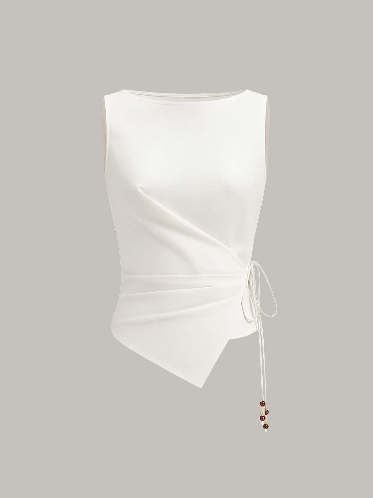 Asymmetric Wrap-Tie Sleeveless Top with Beaded String