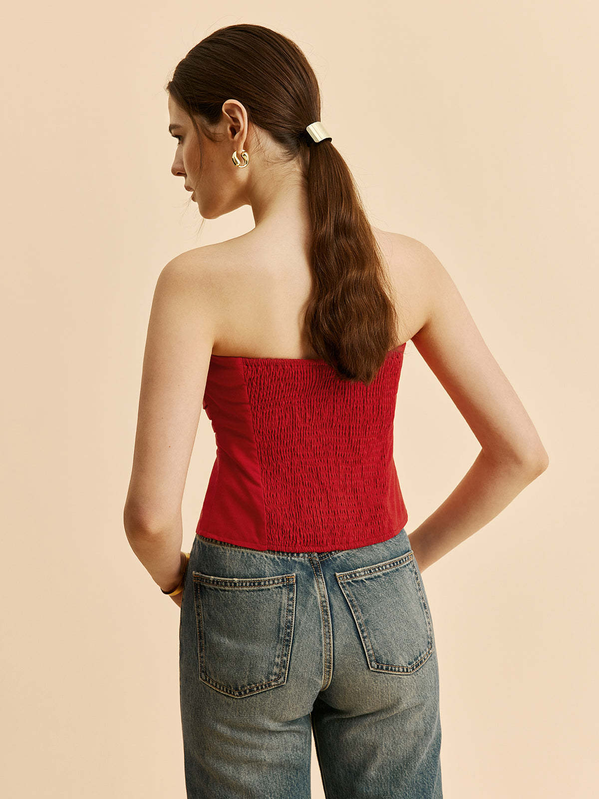 Cotton & Linen Pleated Strapless Top