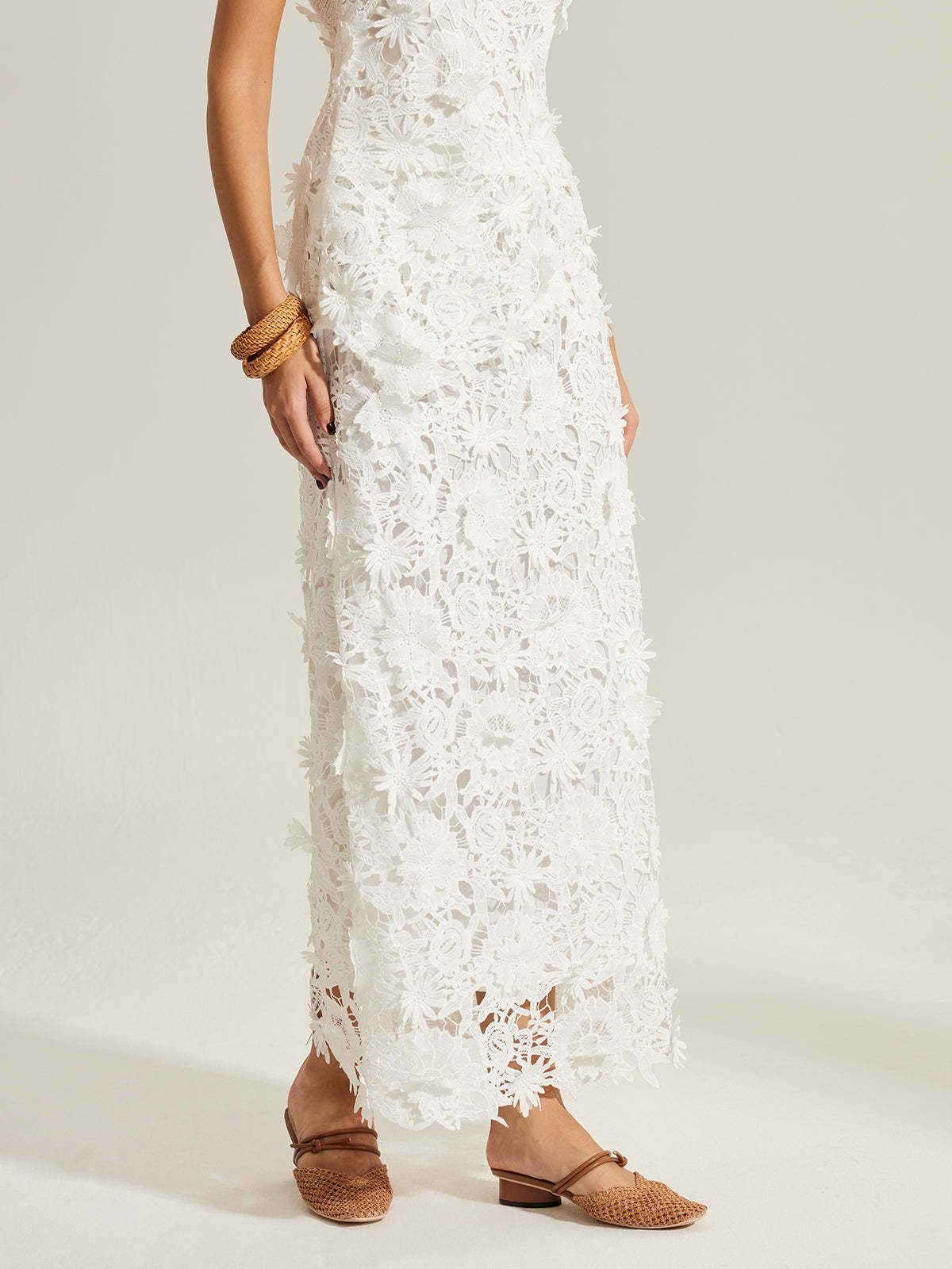 Floral Embroidered Semi-Sheer Lace Skirt