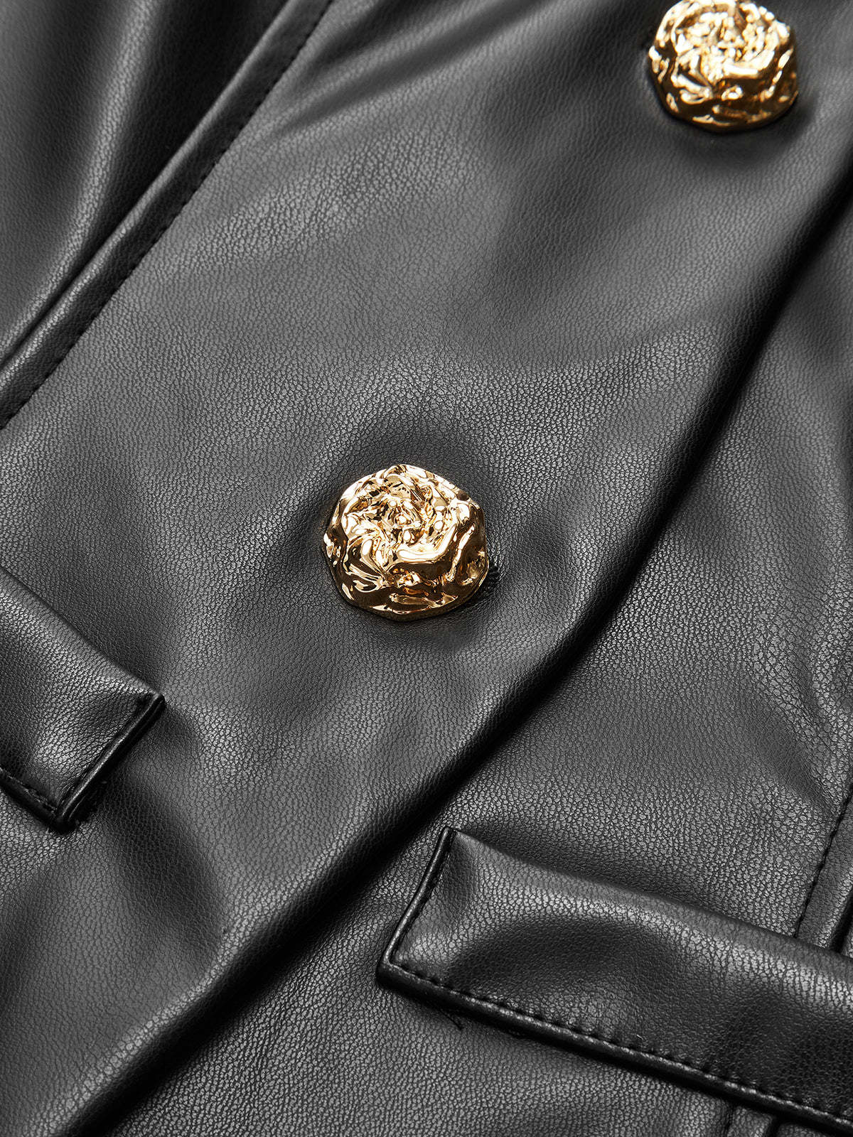 Metal Button Puffed Sleeve PU Leather Jacket