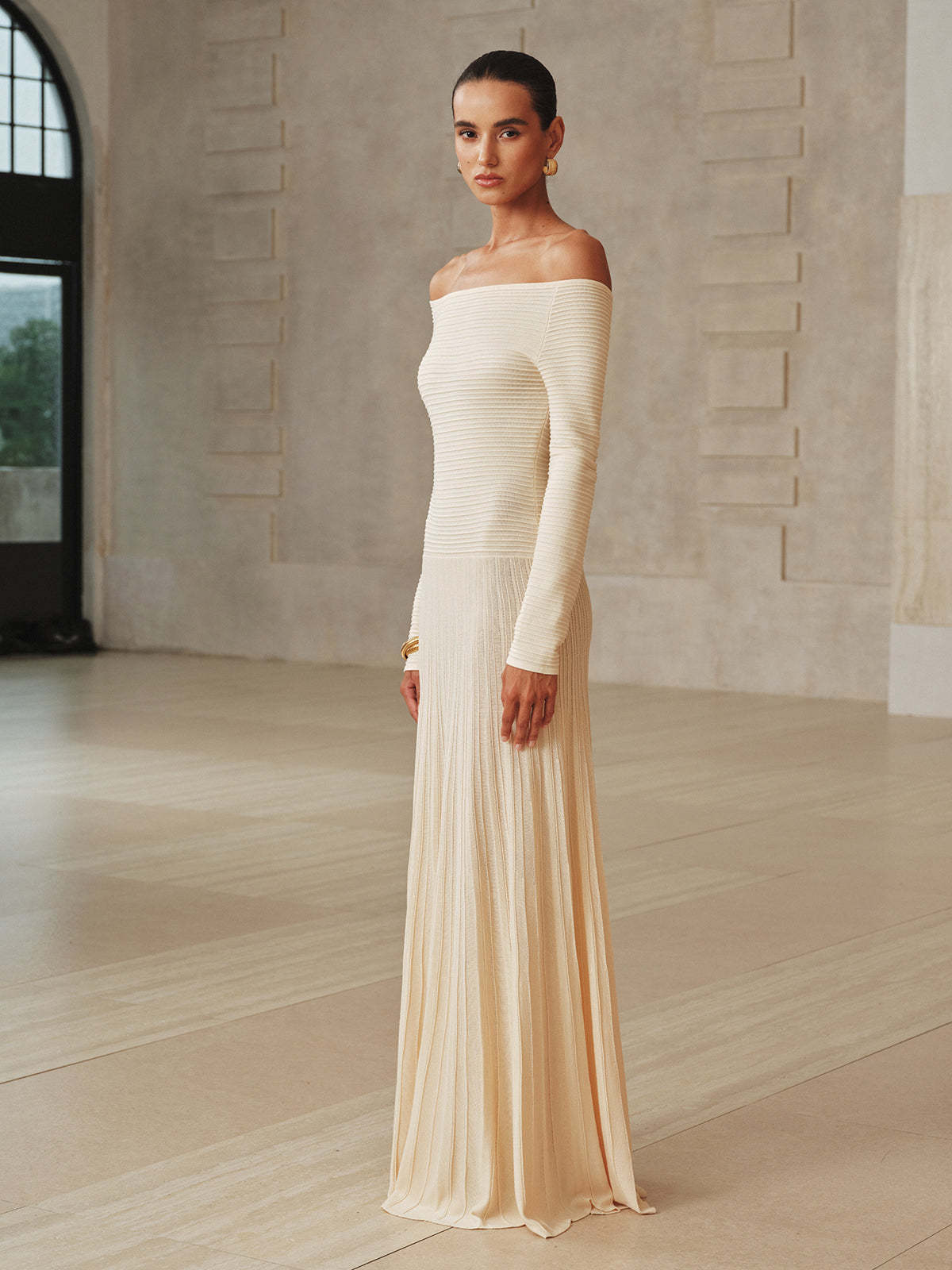 Off-Shoulder Textured Knit Maxi Dress
