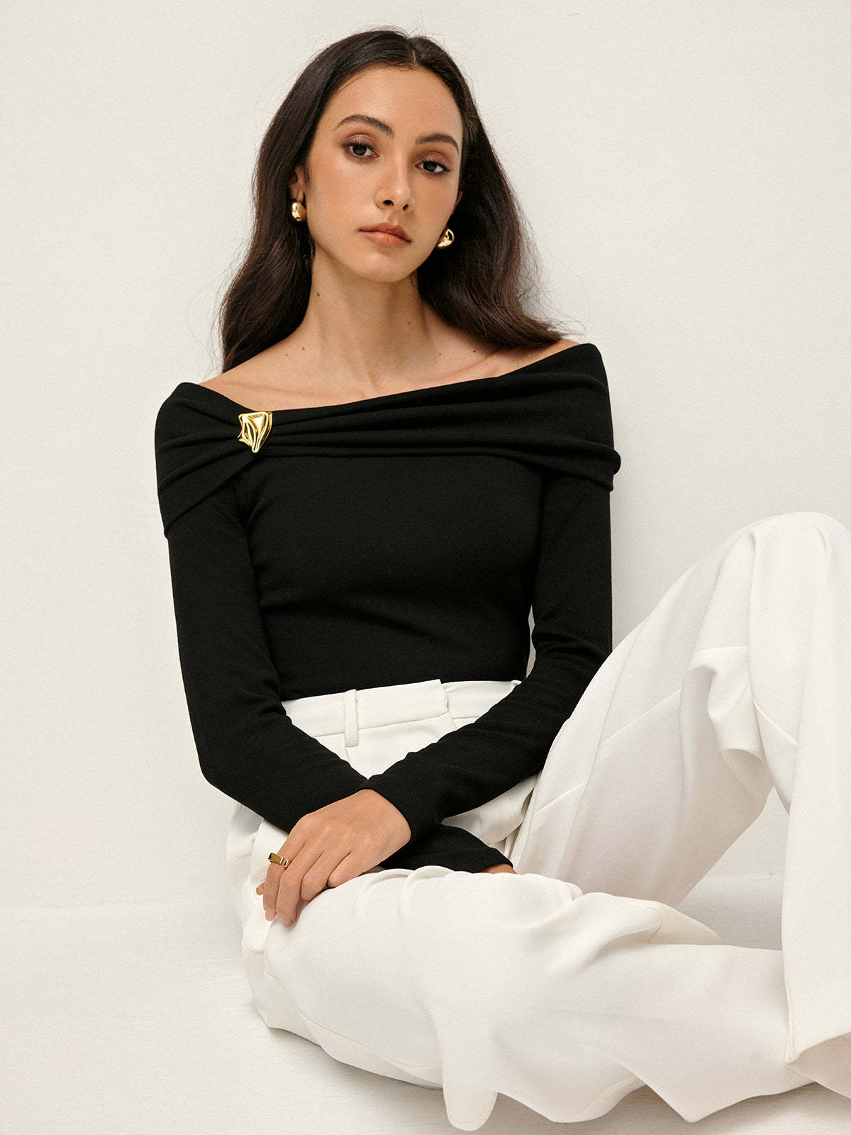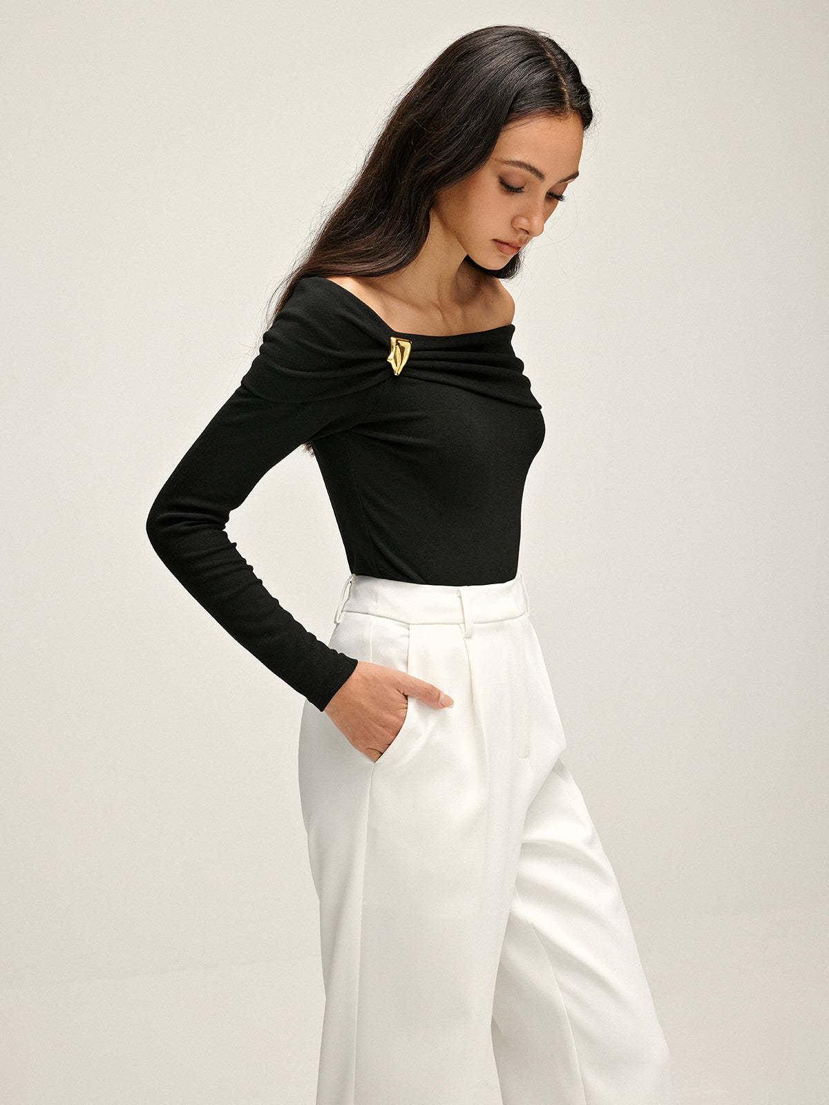 Pleated Off Shoulder T-Shirt