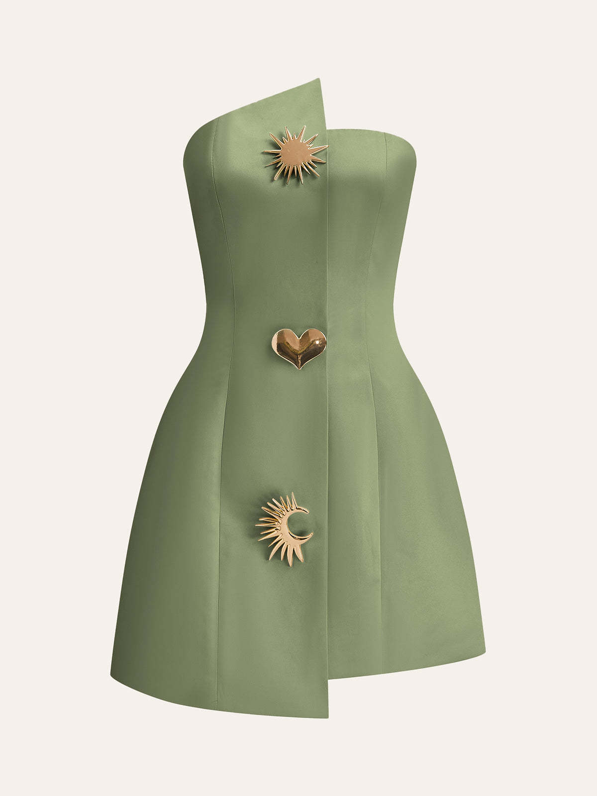 Satin Asymmetrical Embellished Strapless Dress