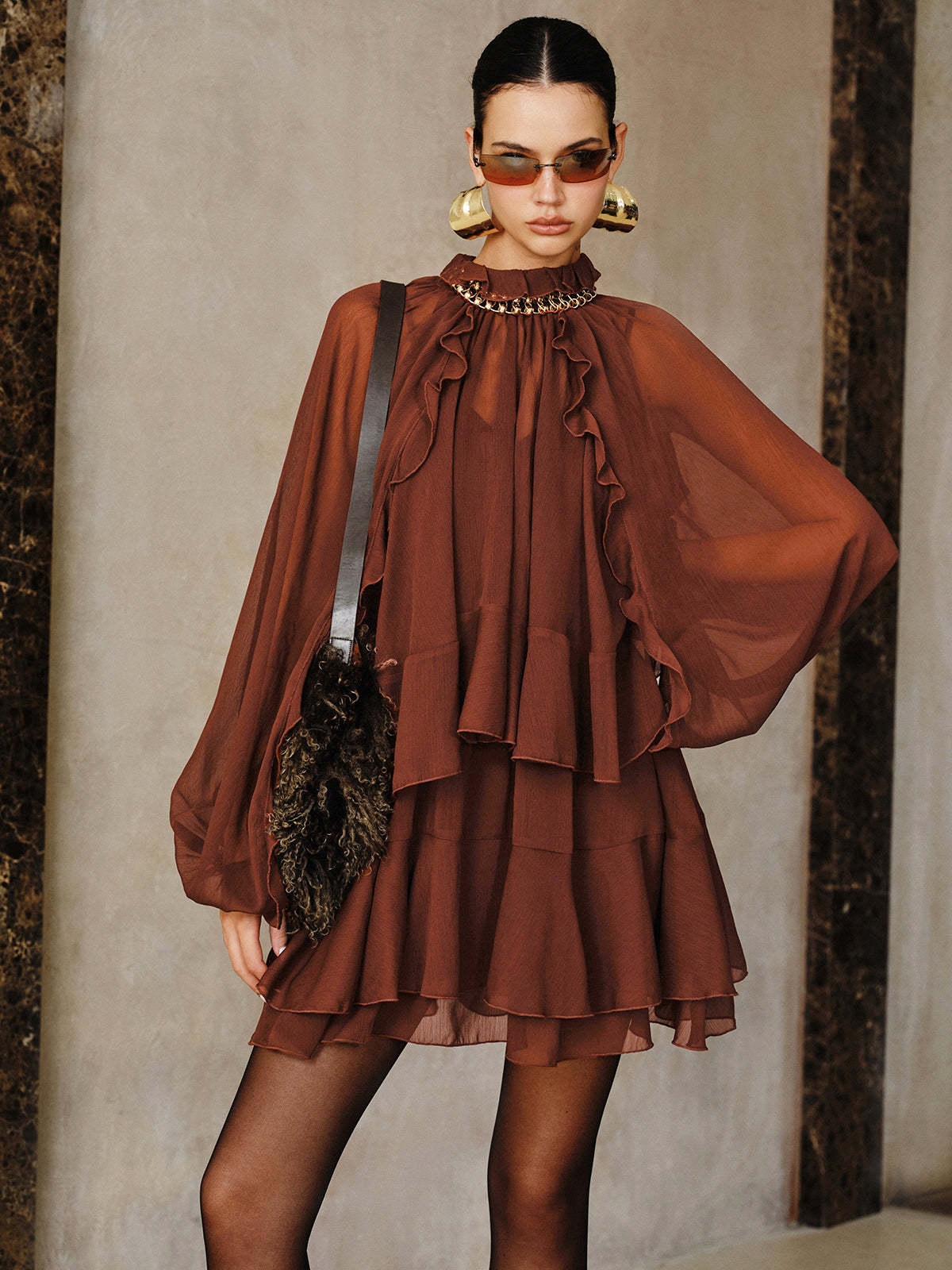 Tiered Ruffle Chiffon Mini Dress Set with Liner