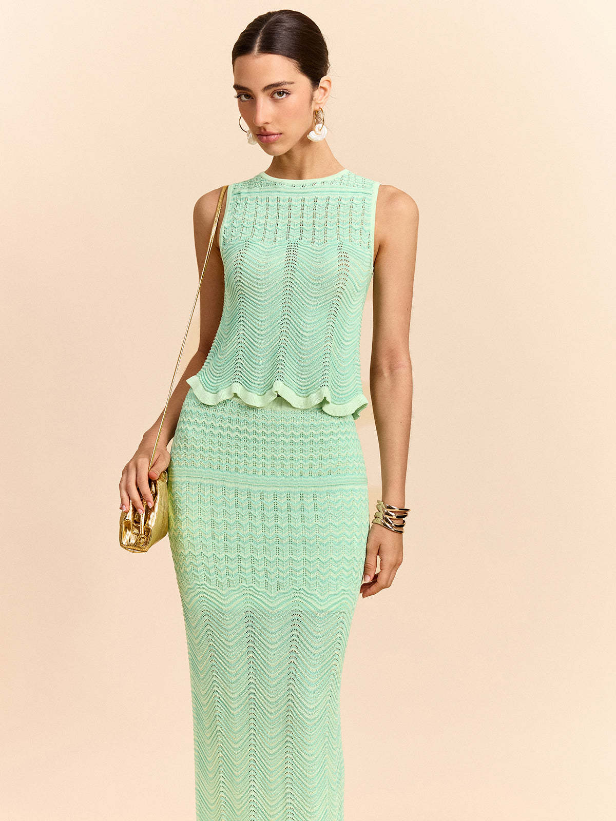Wave Pattern Sleeveless Knit Top