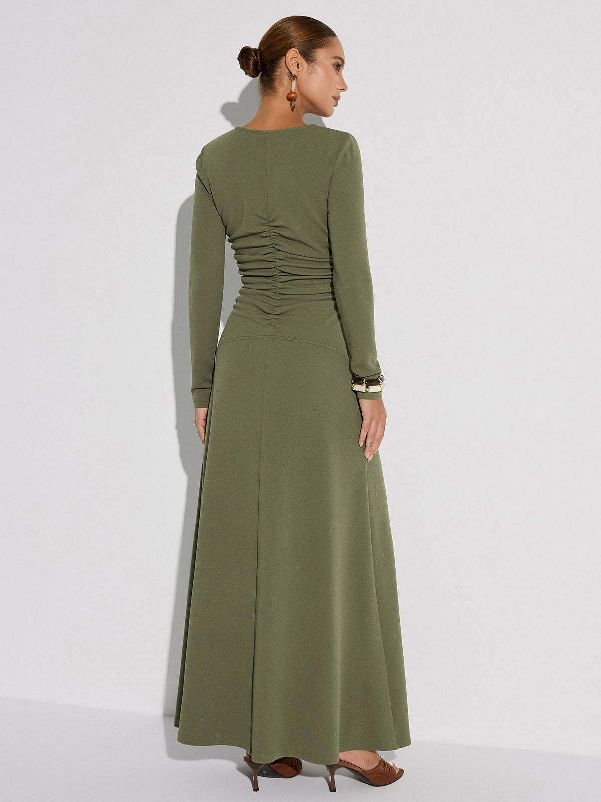 Zipper-Front Ruched Maxi Dress